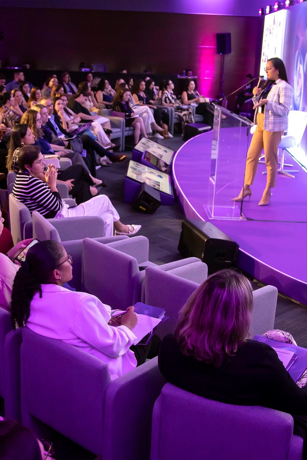 Registros de convenções, palestras, treinamentos e confraternizações com foco profissional.